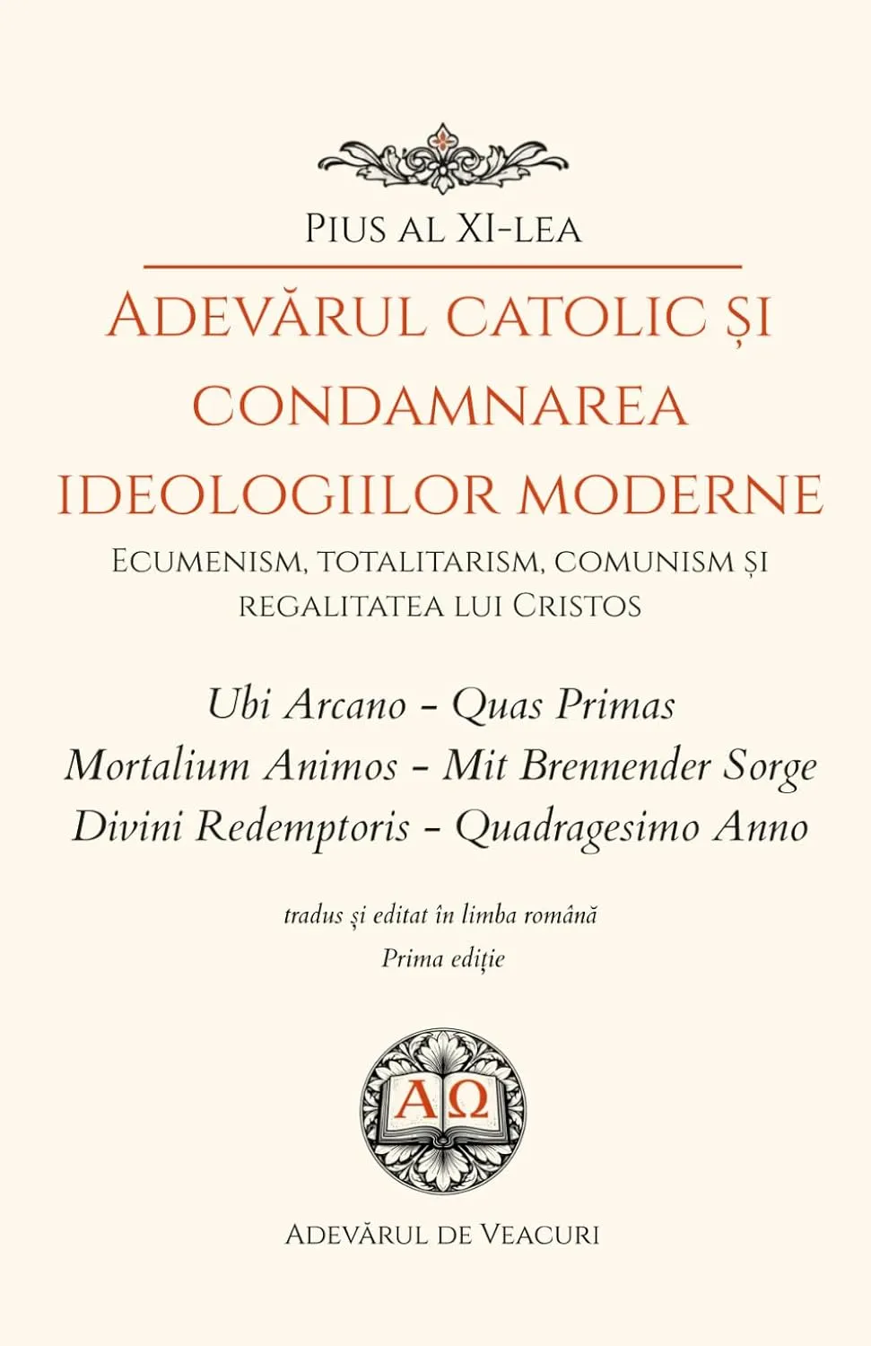 Papă între anii 1922 și 1939, Pius al XI-lea a fost unul dintre marii apărători ai adevărului catolic în fața confuziilor religioase și ideologice ale lumii moderne. Păstor ferm și lucid, a reafirmat cu autoritate unitatea Bisericii, exclusivitatea adevărului revelat și necesitatea supunerii societăților față de domnia lui Cristos.